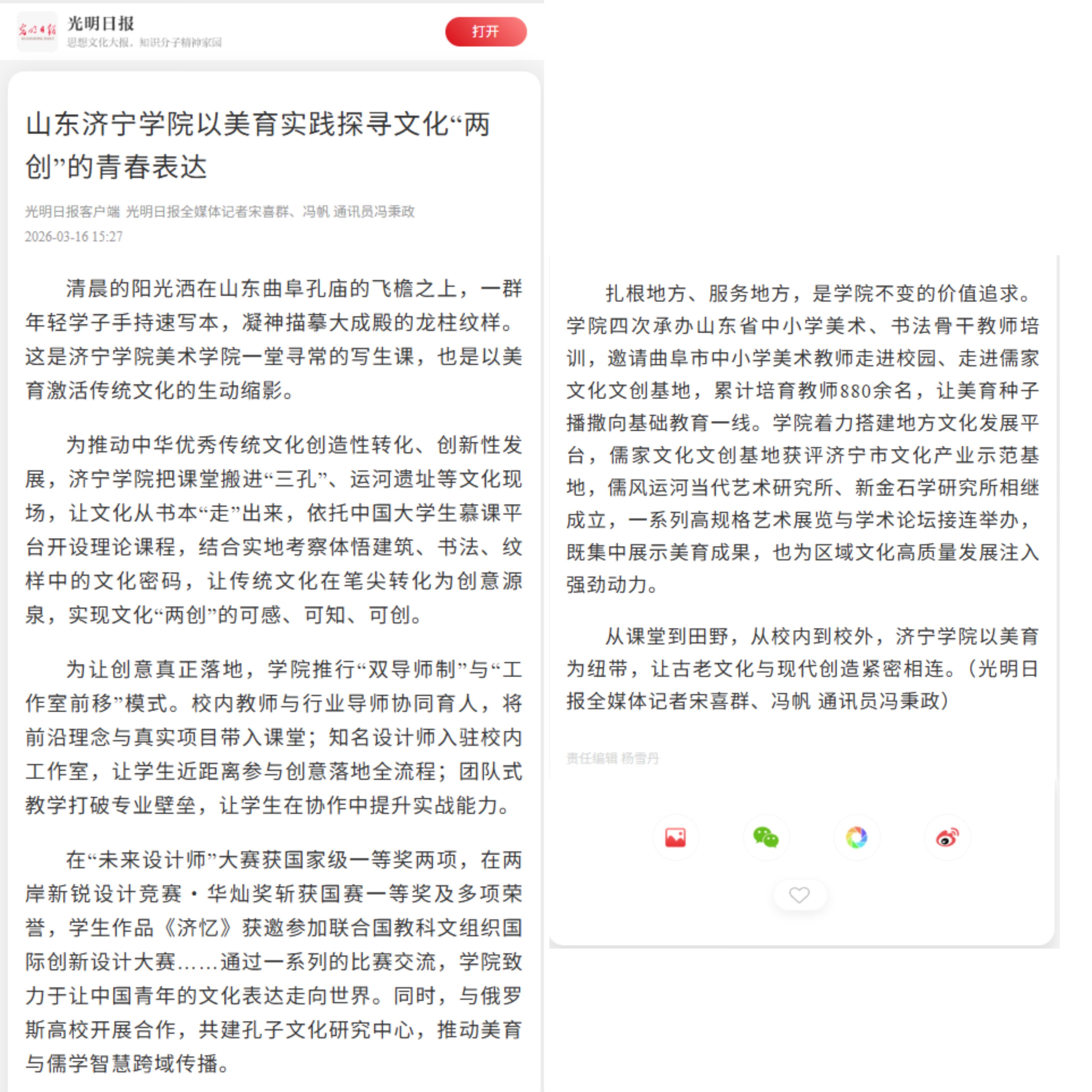 光明日报:山东济宁学院以美育实践探寻文化“两创”的青春表达