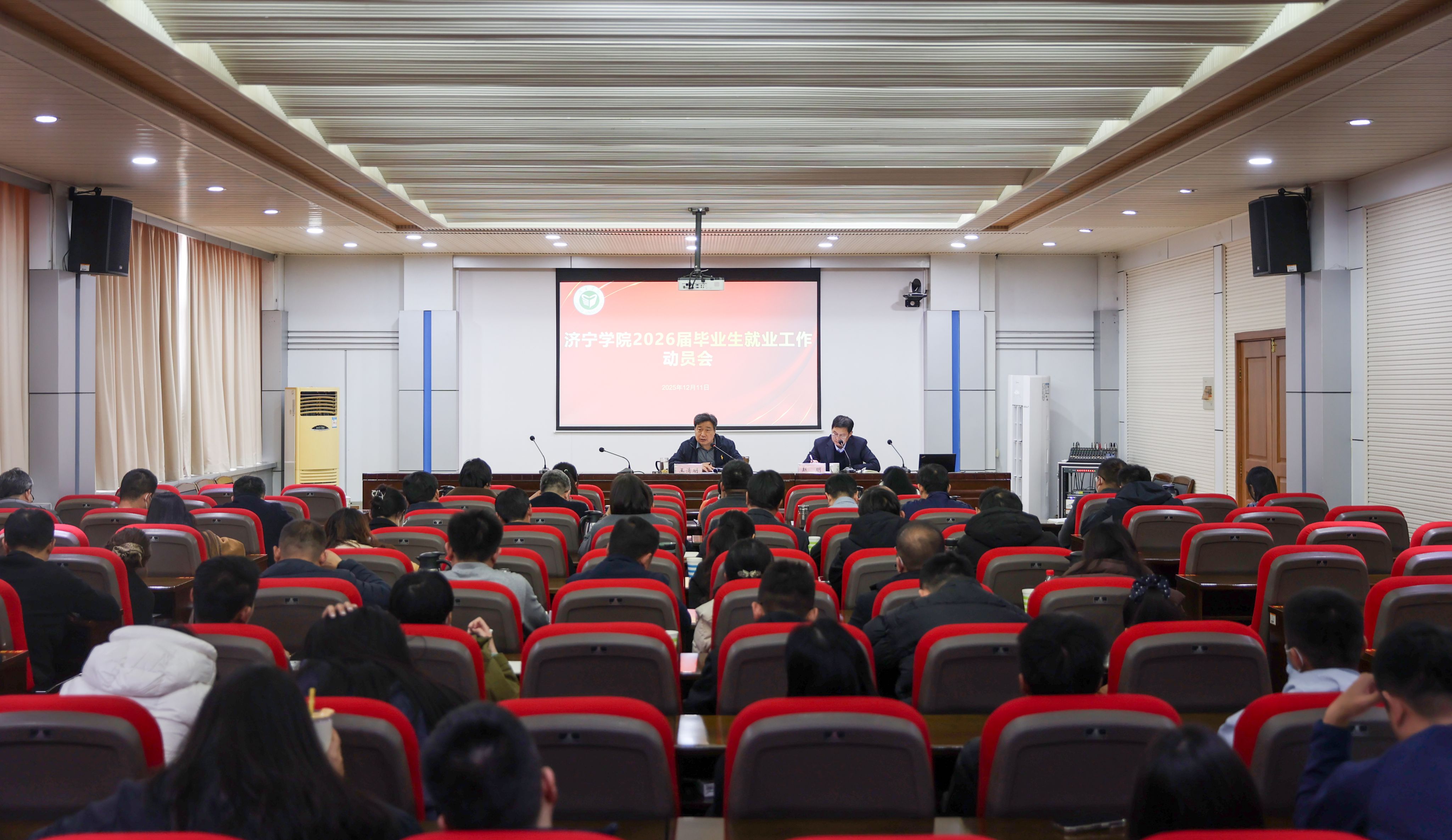 12月11日上午,我校召开2026届毕业生就业工作动员会。校党委副书记、校长王清明出席会议并讲话,校党委委员、副校长赵明主持会议。学生工作处、教务处、合作发展办公室、团委、国际教育学院、教育培训学院相关负责人,各二级学院党委书记、副书记、就业专员、毕业班辅导员,以及学生工作处相关工作人员参加会议。王清明指出,毕业生就业工作是办好人民满意教育的内在要求,是重要的民生工作。各二级学院和相关职能部门要准确把握就业工作面临的新形势、新任务、新要求、新机遇,切实增强就业工作的使命感、紧迫感。王清明强调,要